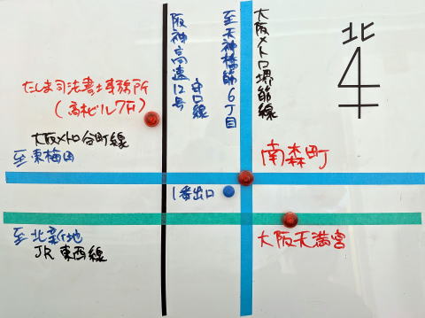 JR西日本東西線「大阪天満宮」駅1番出口を出て、国道1号線を西へ徒歩約3分
